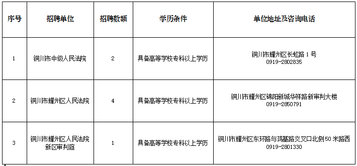 (四)如在招聘工作期間遇到因不可抗力因素等突發(fā)情況,由銅川市中級(jí)人民法院報(bào)請(qǐng)省法院研究決定是否暫緩招聘工作,并向社會(huì)發(fā)布公告。