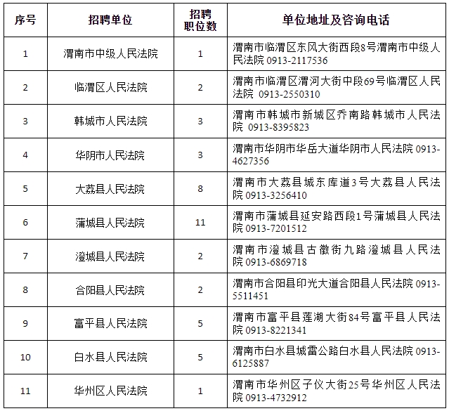 渭南法院2023年面向社會(huì)公開招聘聘用制書記員職位表